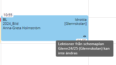 - Delad personal/lokaler mellan enheter – Lektioner från grupperade schemaplaner visas nu men kan inte ändras. Ifall lektionen är på en annan enhet skrivs denna ut på lektionen.