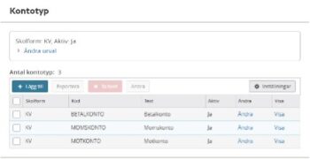 Används för att definiera betalkonto, motkonto och momskonto vid kontering. Uppgifterna är grundladdade och behöver inte ändras.