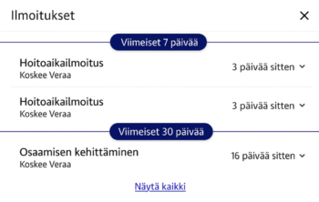 Huomaa, että jotkin toiminnallisuudet käyttävät edelleen Viestit-moduulia ilmoitusten lähettämiseen. Näissä tapauksissa ilmoituksen avaaminen vie sinut Viestit-moduuliin, ei siihen moduuliin, josta ilmoitus alun perin tuli. Tavoitteena on, että Edlevo Appin kaikki ilmoitukset näkyisivät jatkossa ilmoitukset -näkymässä. Julkaisu suunnitteilla vuoden 2026 alkupuoliskolla.